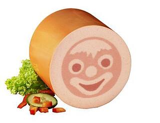 Brühwurstpastete, rein aus Geflügelfleisch hergestellt, mit attraktivem Motiv, 4 Stück im Karton, 15 Stück in E2 Satte