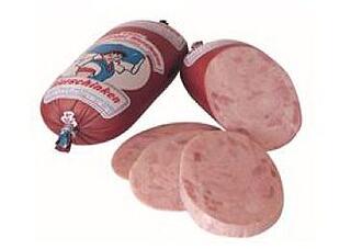 Feines Brühwurstbrät mit groben Fleischeinlagen und Senfkörnern im KD, ATM, Kal. 55