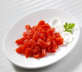 Dahlhoff, gefärbte, mildgesalzene Alaska-Seelachsschnitzel in Pflanzenöl Lachsersatz, Fischeinwaage 750gr.