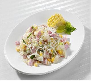 Dahlhoff, Ein bunter Salat mit gekochtem Schinken, Eiern, Früchten und Gemüse