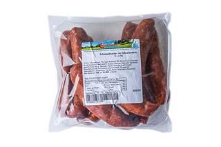grob gewolfte Rohwurst mit sichtbaren Magerfleisch und Speckanteil, Schweinedarm Kaliber 28/30, kräftige Rauchfarbe, 1kg Packung, 16 Packungen in E2 Satte